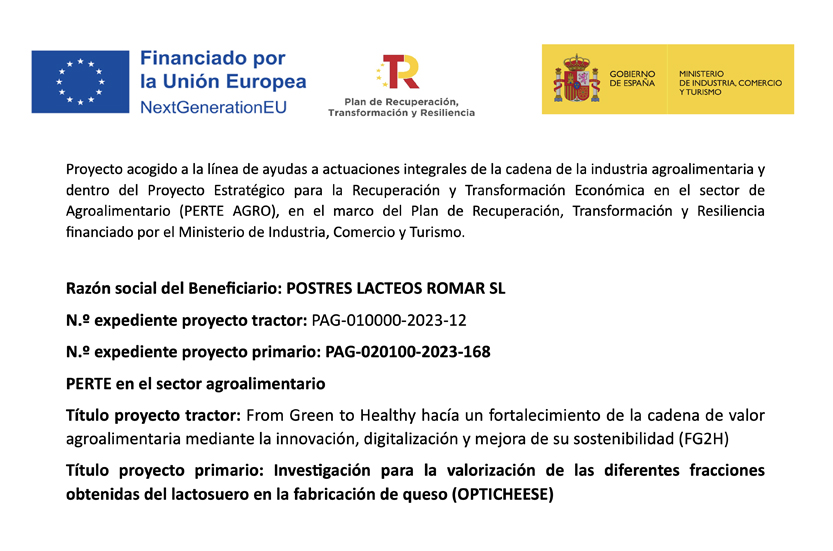 Proyecto acogido a la línea de ayudas a actuaciones integrales de la cadena de la industria agroalimentaria y dentro del Proyecto Estratégico para la Recuperación y Transformación Económica en el sector de Agroalimentario (PERTE AGRO), en el marco del Plan