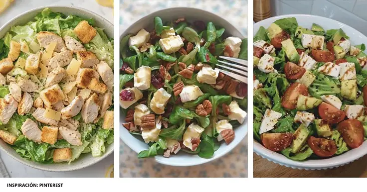 Añade dados de queso Granja Rinya, del que más te guste, a una ensalada de hojas verdes, legumbres o verduras asadas aporta sabor y nutrientes sin necesidad de salsas pesadas. El queso ayuda a que el plato sea más completo y satisfactorio.